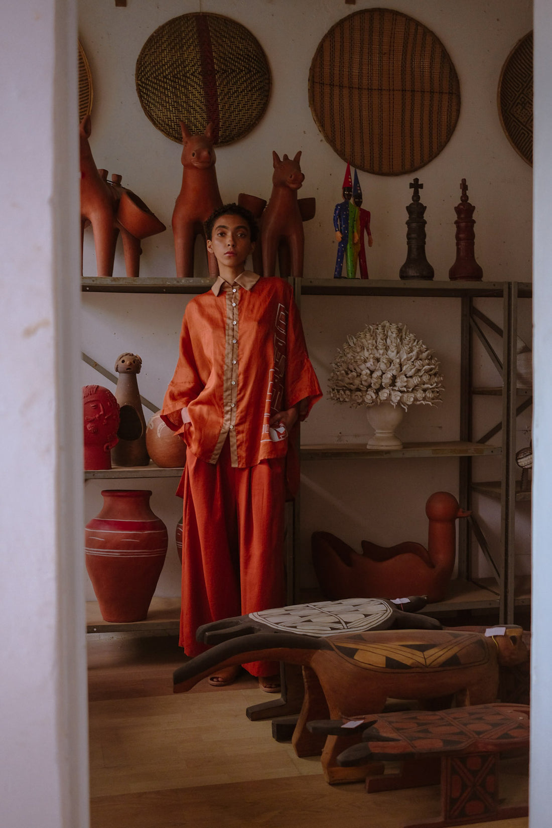 Chemise de corte amplo e reto, confeccionada em jacquard 100% algodão com padronagem exclusiva inspirada...