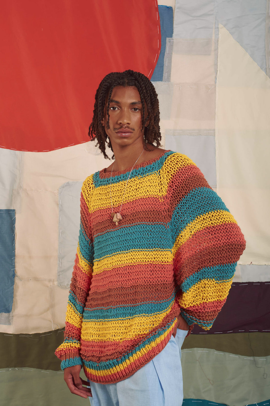 Suéter confeccionado à mão pela técnica top-down, que utiliza agulha circular para construir a peça...