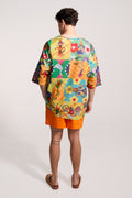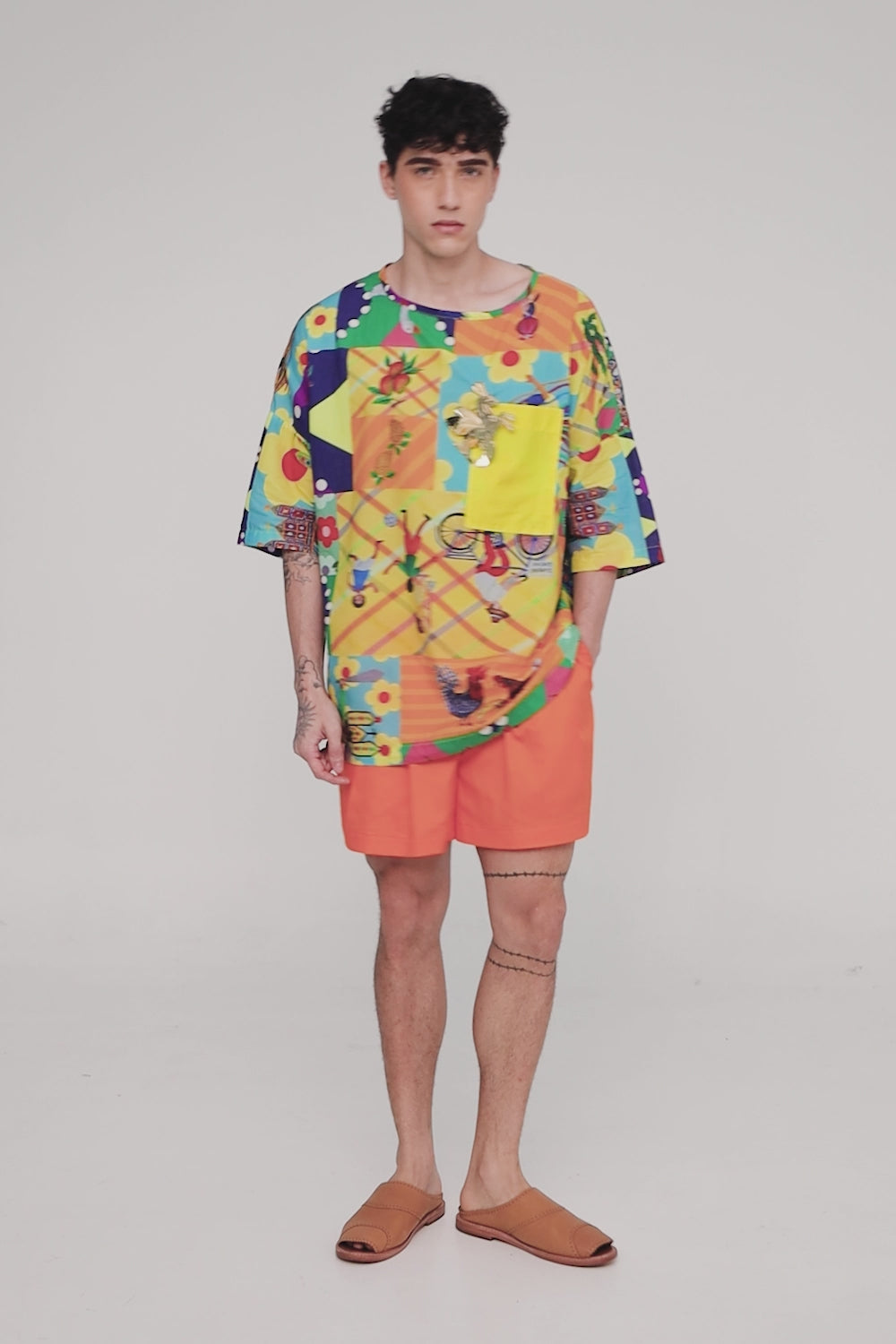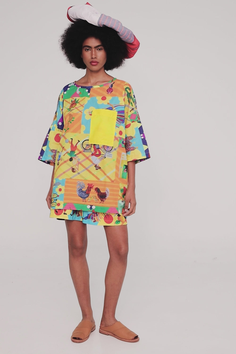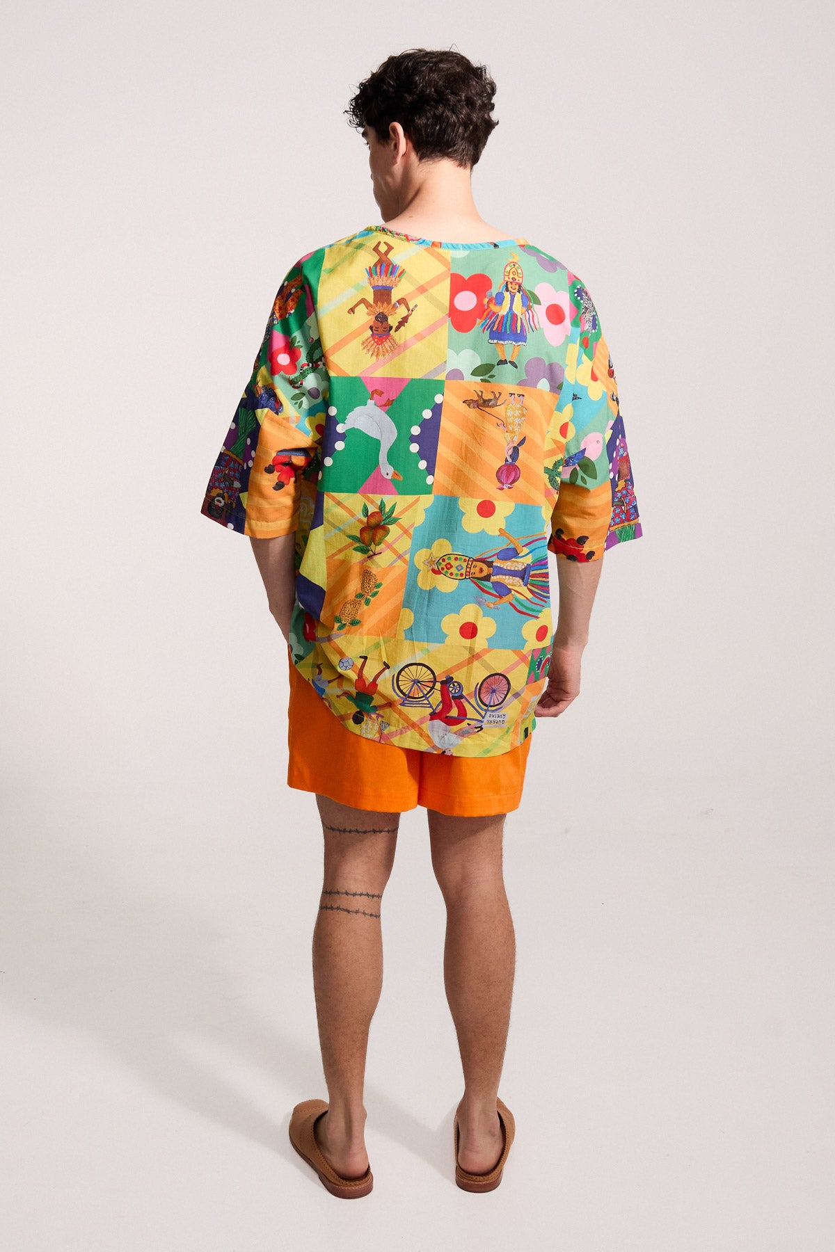 Bata em formato T-Shirt em tricoline de algodão premium. Acabamento interno do decote em viés rebatido e acabamento de costuras em técnica inglesa. Recebe bolso chapado na altura do busto no lado esquerdo. Estampa exclusiva desenvolvida para a coleção Povoado Poesia a partir de pinturas criadas por Luciana Almeida, artista e bordadeira de Capela - AL