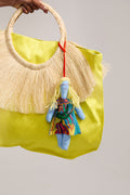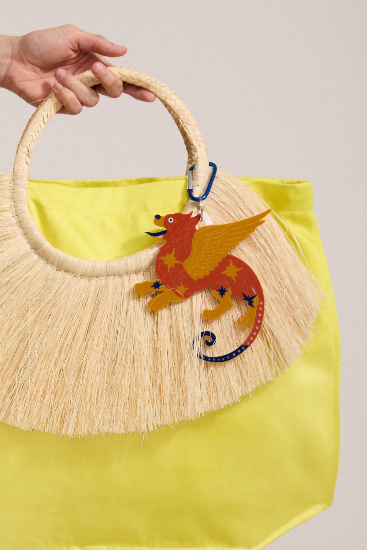 Bolsa em tecido com forro e bolso interno chapado. Recebe alças de palha de ouricuri desenvolvidas em parceria com o grupo produtivo Pontal Art em Pontal do Coruripe - AL